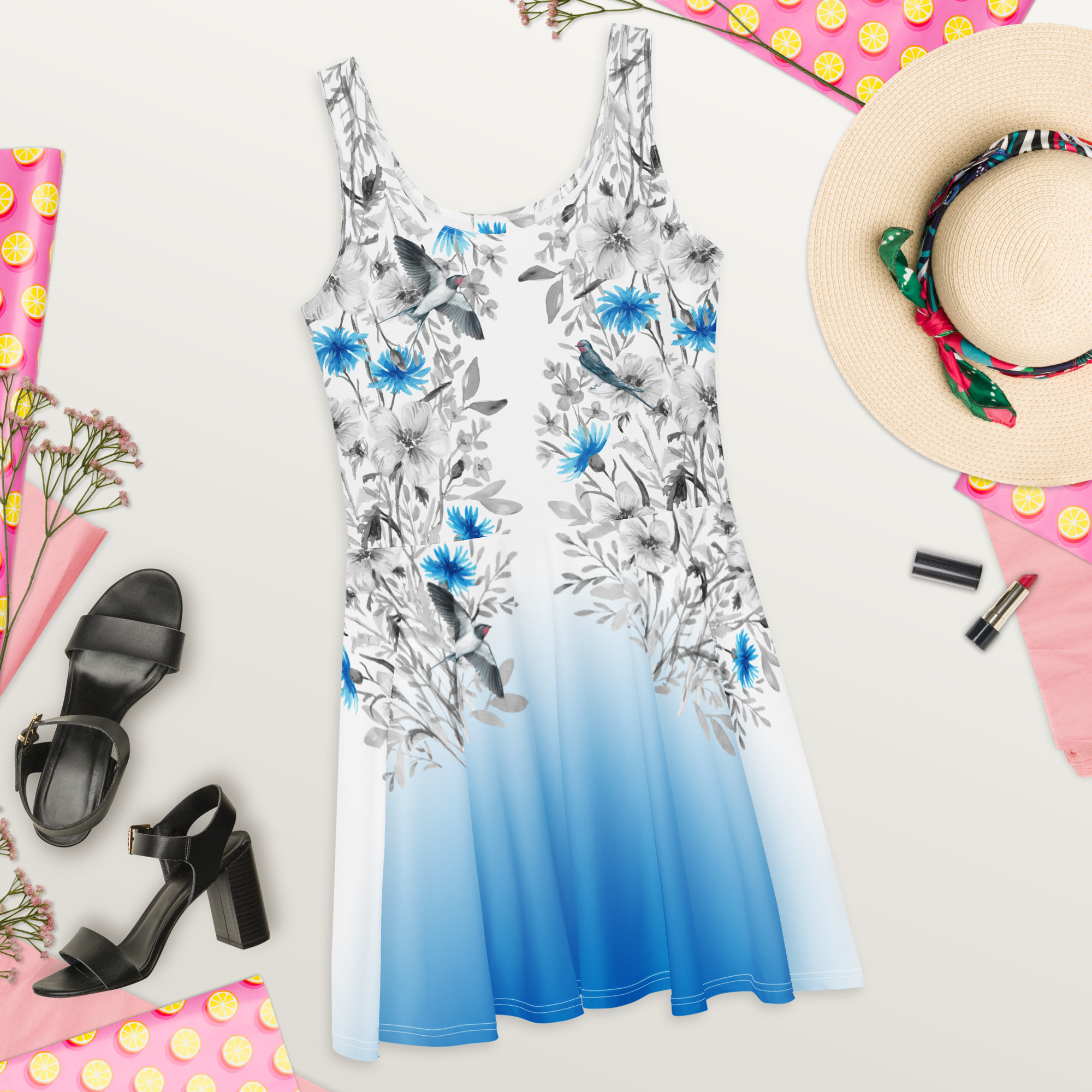Skater kleit luiged on võluv ja naiselik kleit, mis väljendab luikede graatsilist ilu ja võlu. Luikede muster lisab kleidile stiili ja elegantsi. Luikedel on sügav sümboolne tähendus, seostudes sageli puhtuse, armastuse ja vaimsusega. Skater kleidi lõige on naiselik ja taljet rõhutav, samal ajal pakkudes mugavust ja liikumisvabadust. See sobib suurepäraselt suvegarderoobi või sooja maa puhkusereisile. Olgu sul plaanis jalutuskäik rannas, õhtusöök terrassil või avastusretk puhkuse sihtkohas, skater kleit Luiged tagab sulle värskendava ja pilkupüüdva välimuse igal sammul.